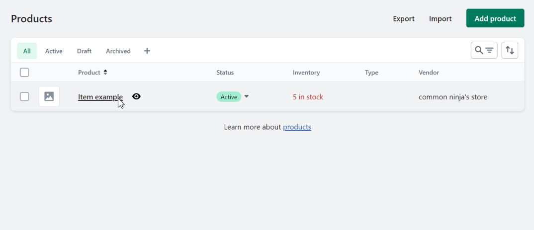 - In your Shopify store’s admin panel, click on the Products option on the left admin panel: