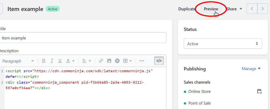 - And that's it! You've added a Common Ninja widget to a Shopify product page