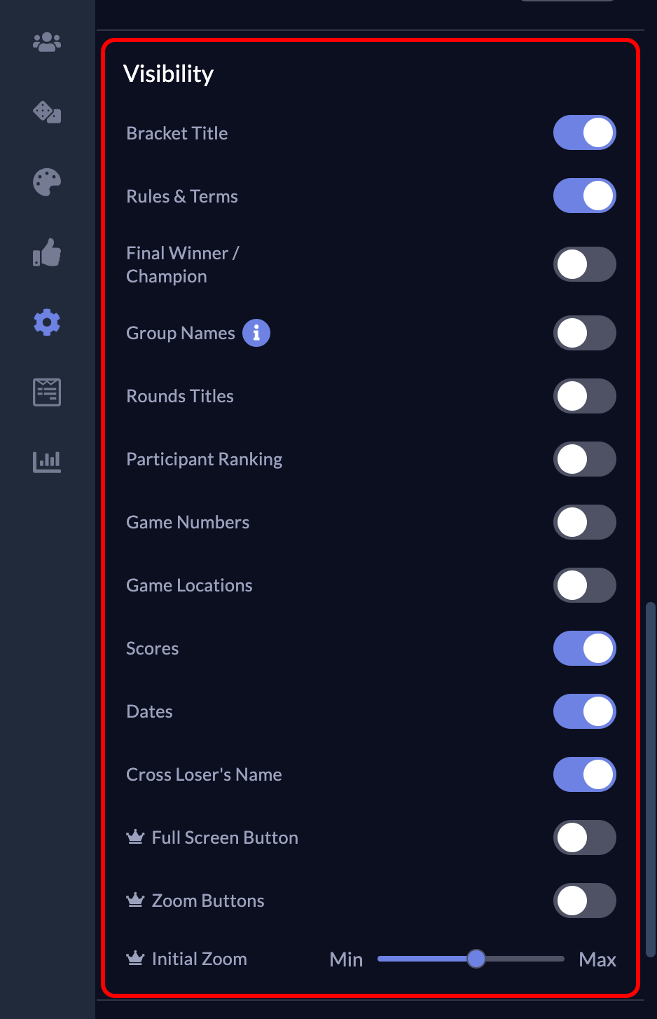 - Scroll down to the “Visibility” section. Here, easily toggle on or off the elements you want to be displayed on your widget.