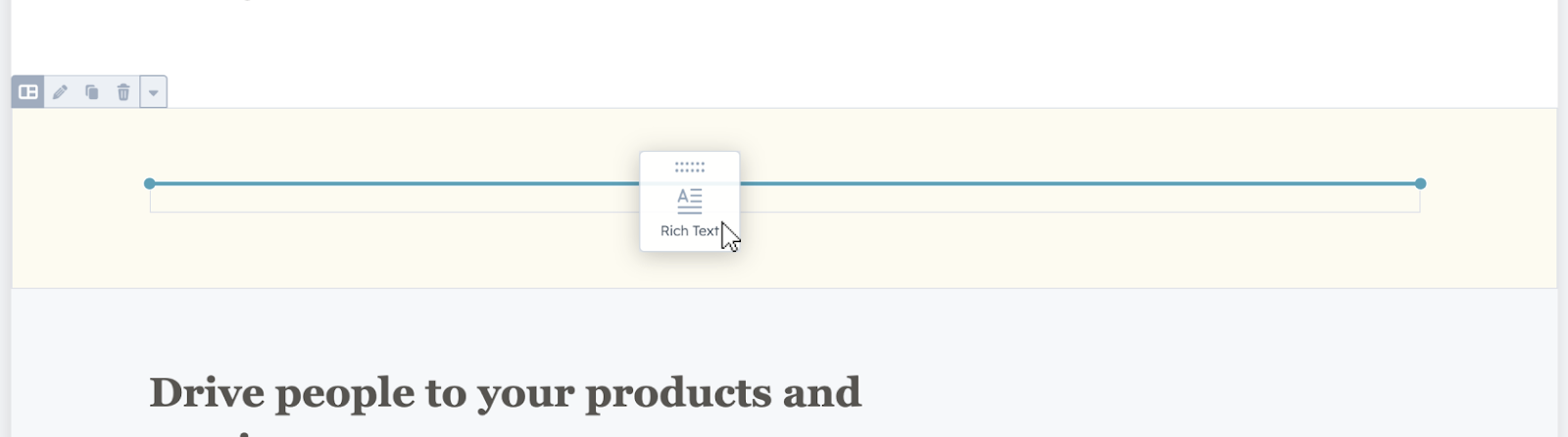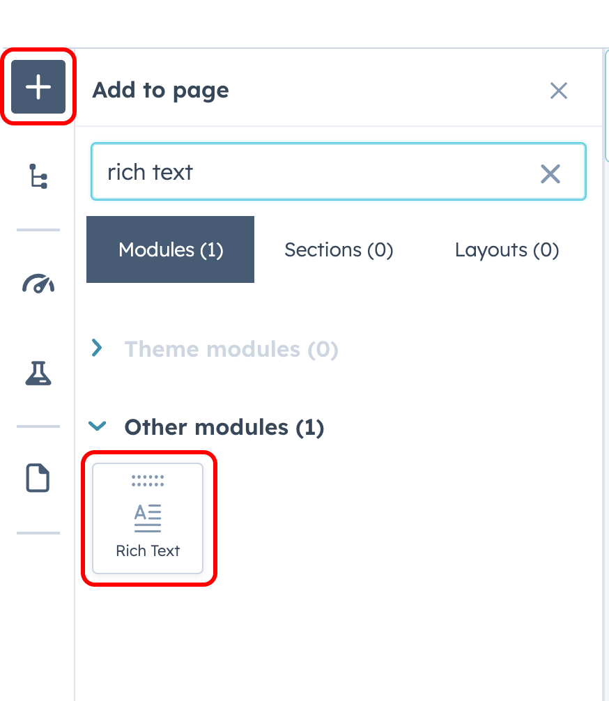 - On the left-hand menu, click on the Add button. Choose the Rich Text element, then drag and drop it to the desired location on your webpage.