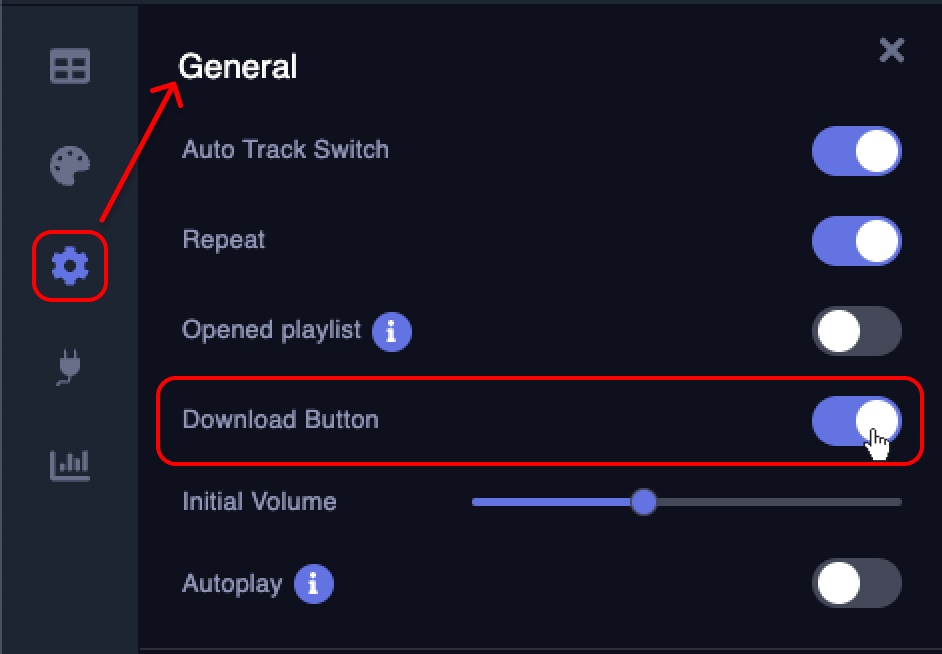 To activate the Download Button, navigate to the Settings tab. Within the General section, locate the Download Button option and turn it on.