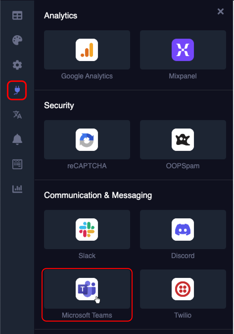 Enabling the Microsoft Teams integration allows you to receive live notifications for new submissions on your widget.