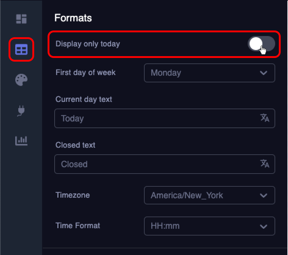 How to display Only Today's Content? Support Team August 23, 2024 08:09 Updated Follow To display only the current day's content, Navigate to the "Content" tab, and within the "Formats" section, activate the "Display Only Today" toggle to enable this feature. Related articles What Is the “View Limit” Trigger & How To Turn It On? How to Install Common Ninja's Widgets Globally On a Website What are the benefits of using email widgets? How To Set Up the RSS Integration How To Enable & Limit Submissions?