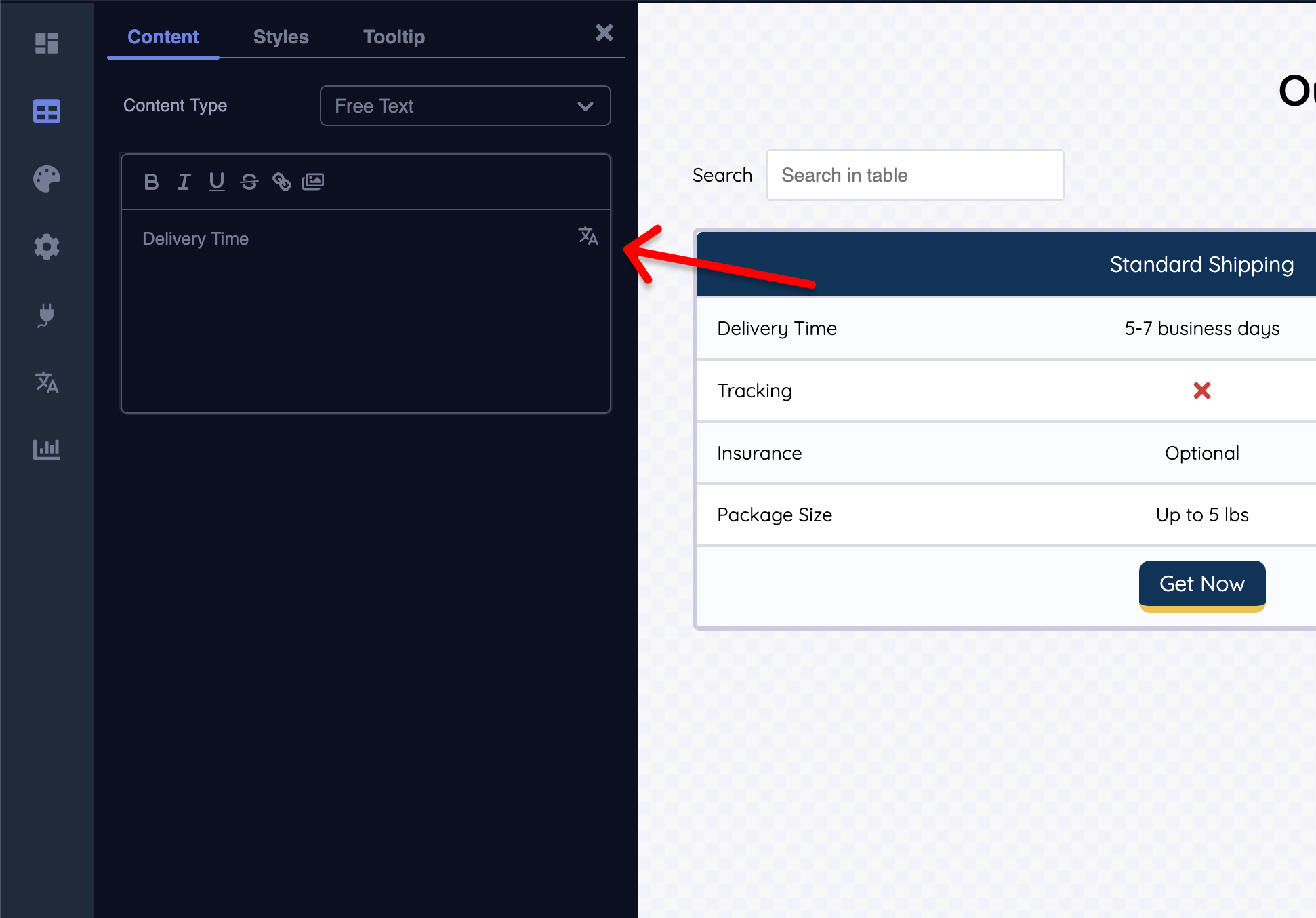 - Upon clicking this button, a new set of options will display on the left dashboard. Here, you can modify the cell's element type, personalize its styling, and even add a tooltip for enhanced functionality.