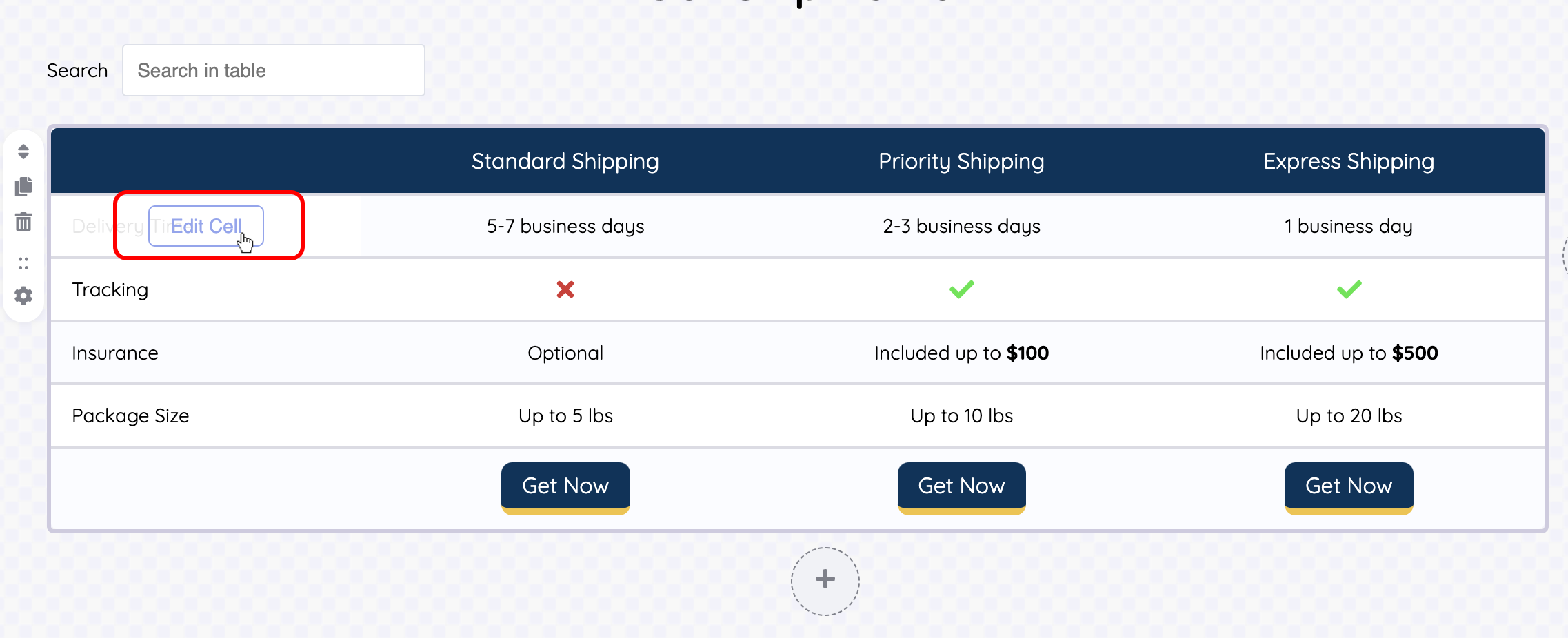 - Within your widget editor, hover over the desired cell. An "Edit Cell" option will appear, allowing you to access the cell's settings.