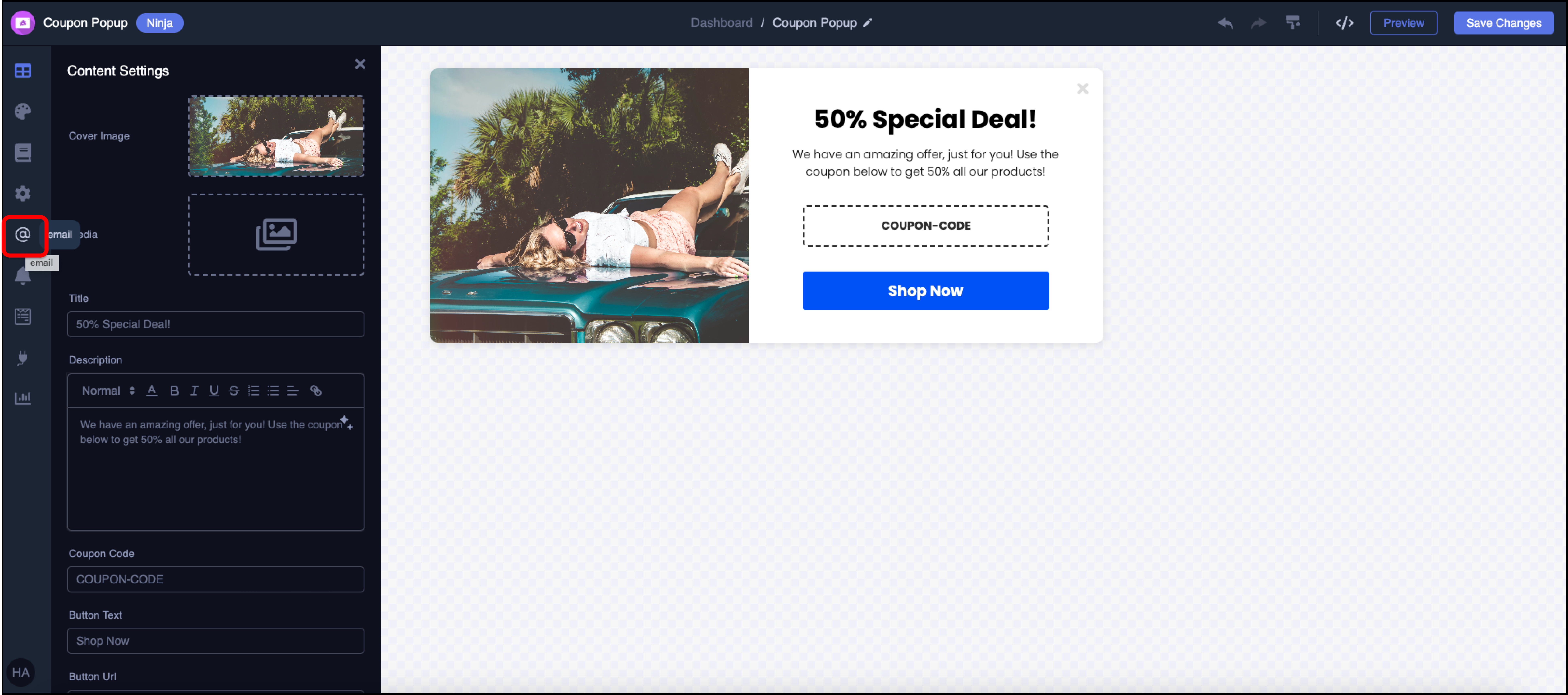 Open your widget dashboard and navigate to the widget you want to embed in an email. - Embed on Email Section: