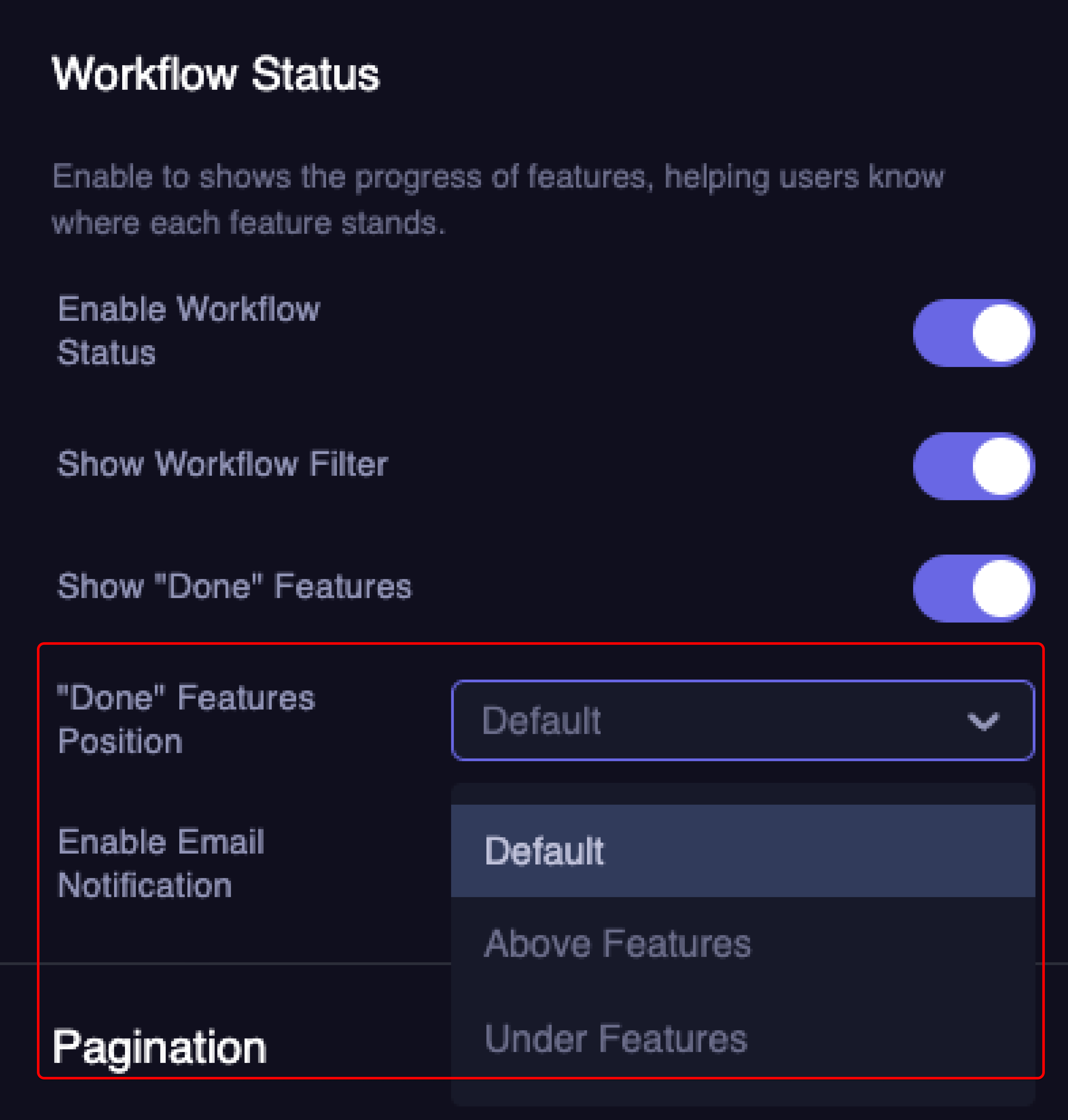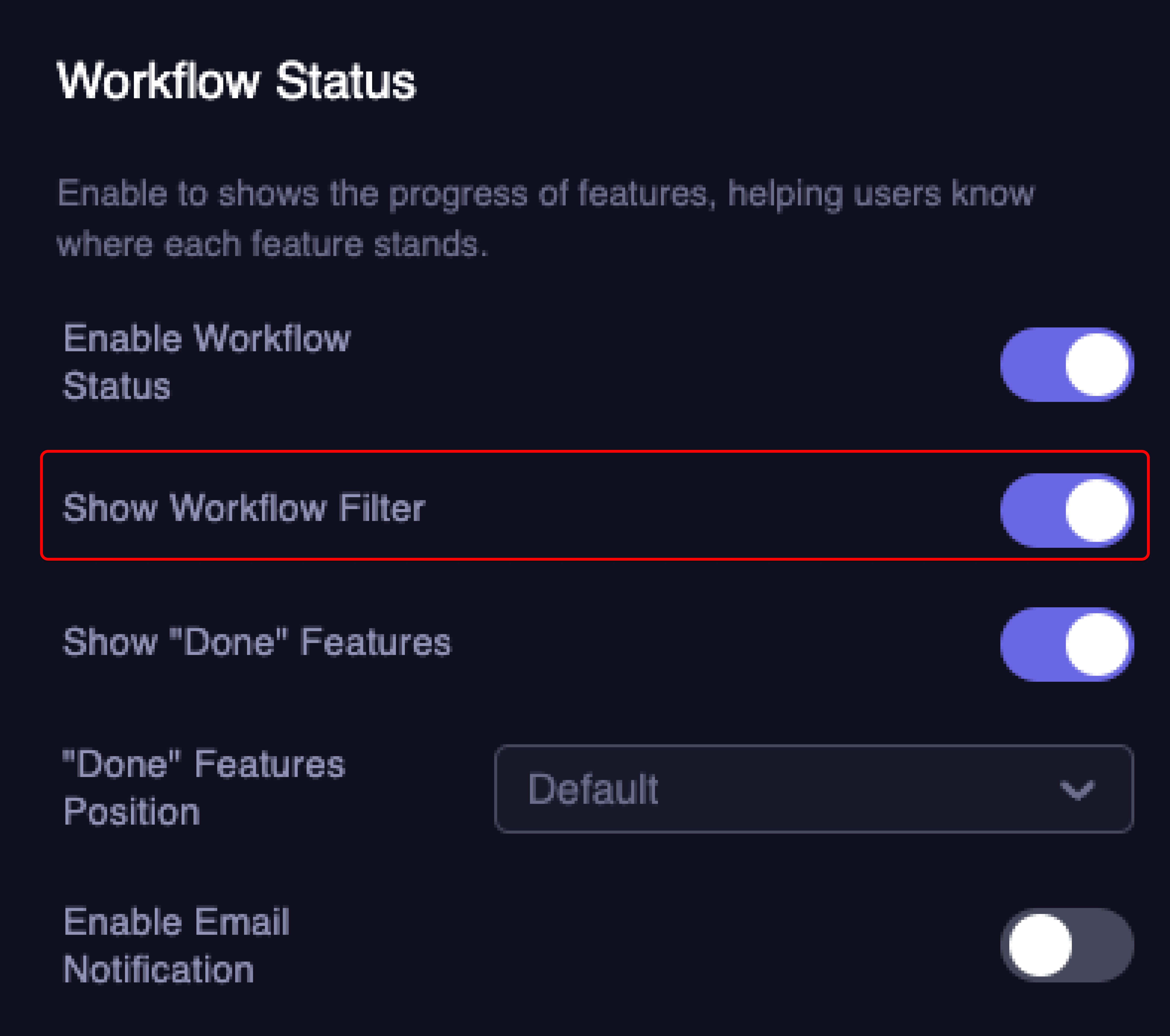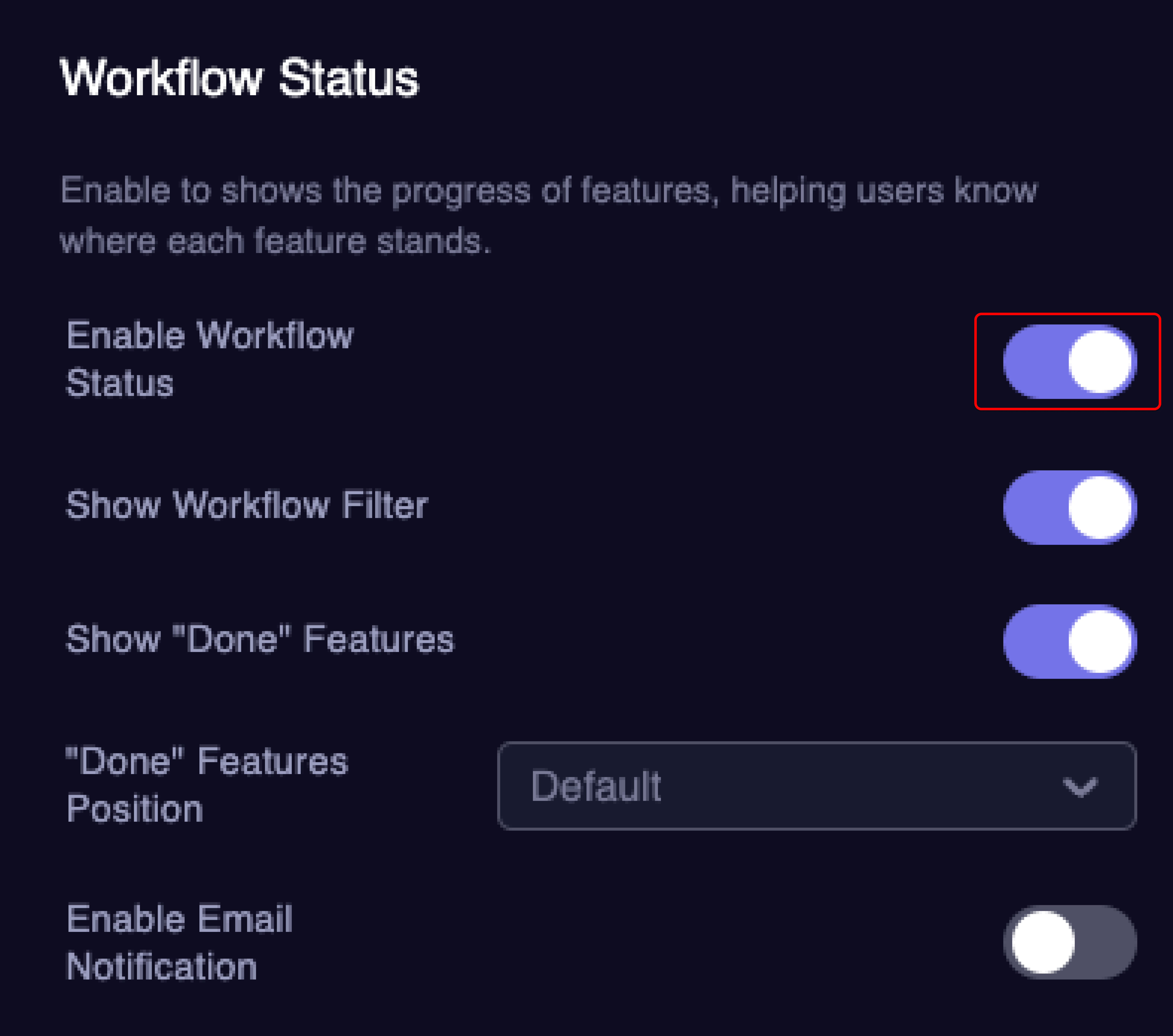 - Customize the display of "Done" features in the Workflow Status settings to suit your preferences.