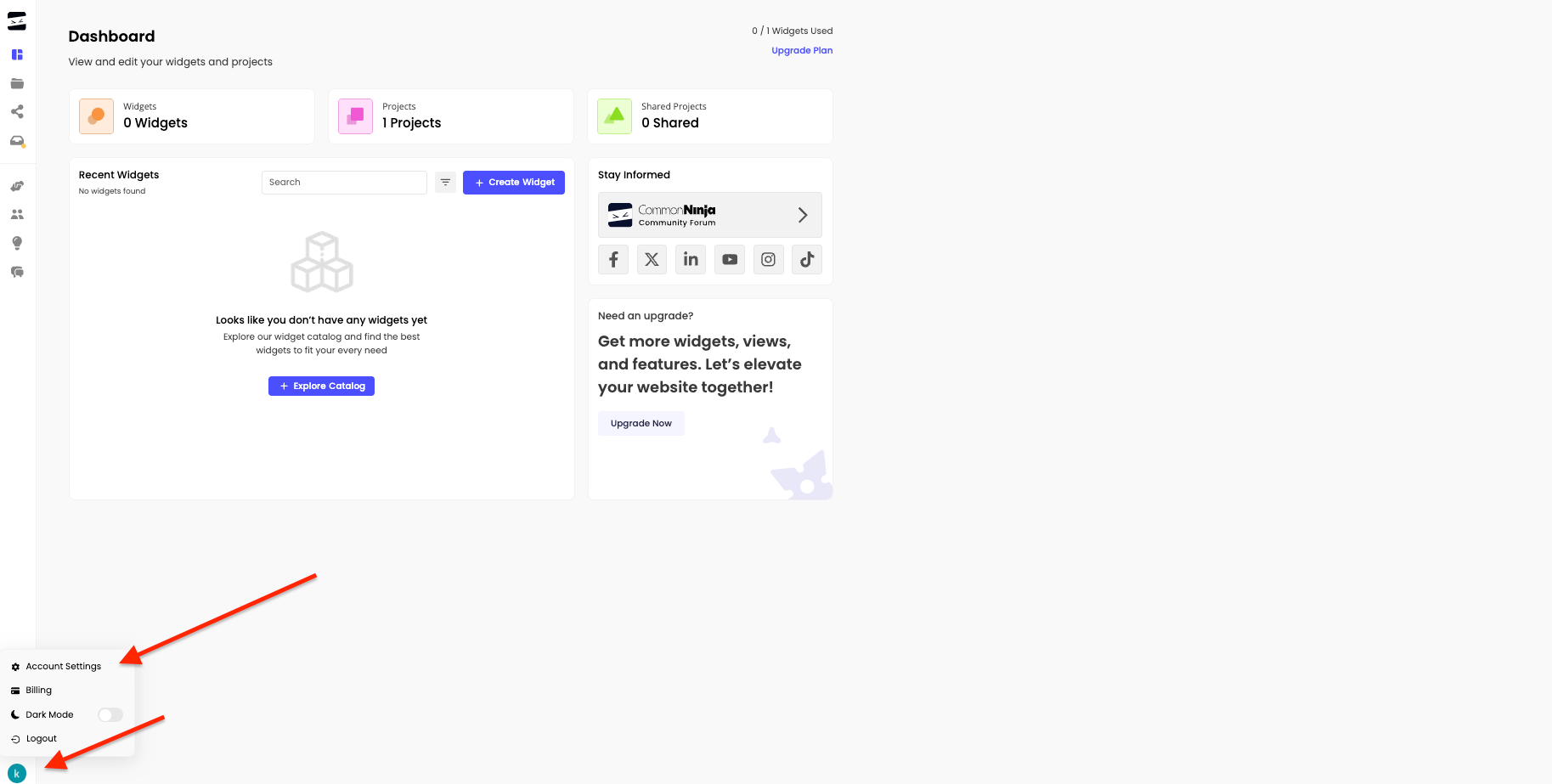 1. Log in to your Common Ninja account at https://www.commoninja.com/login :