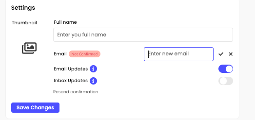 4. Enter your new email address in the New Email field and click Confirm (V):