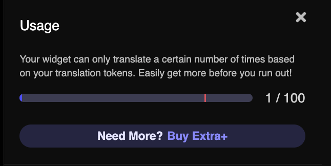 Your widget can only translate a certain number of times based on your translation tokens. Easily get more before you run out!