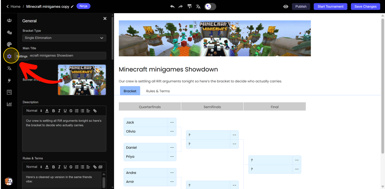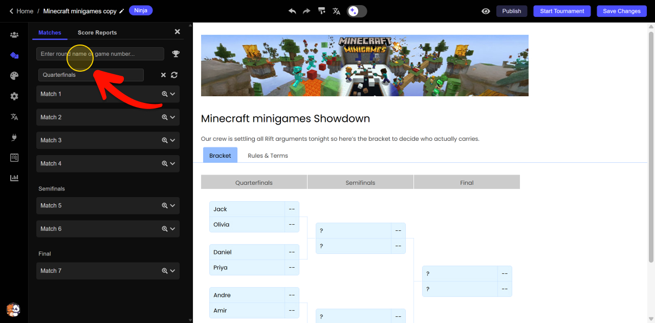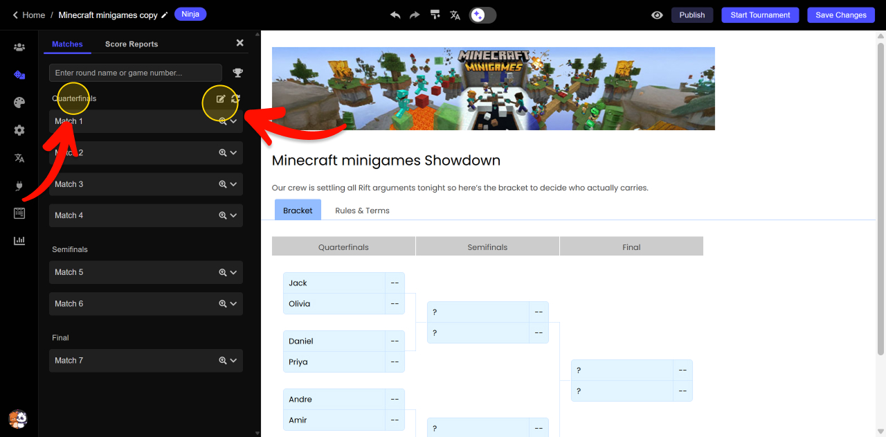 Click Save Changes and Publish to update your live bracket.