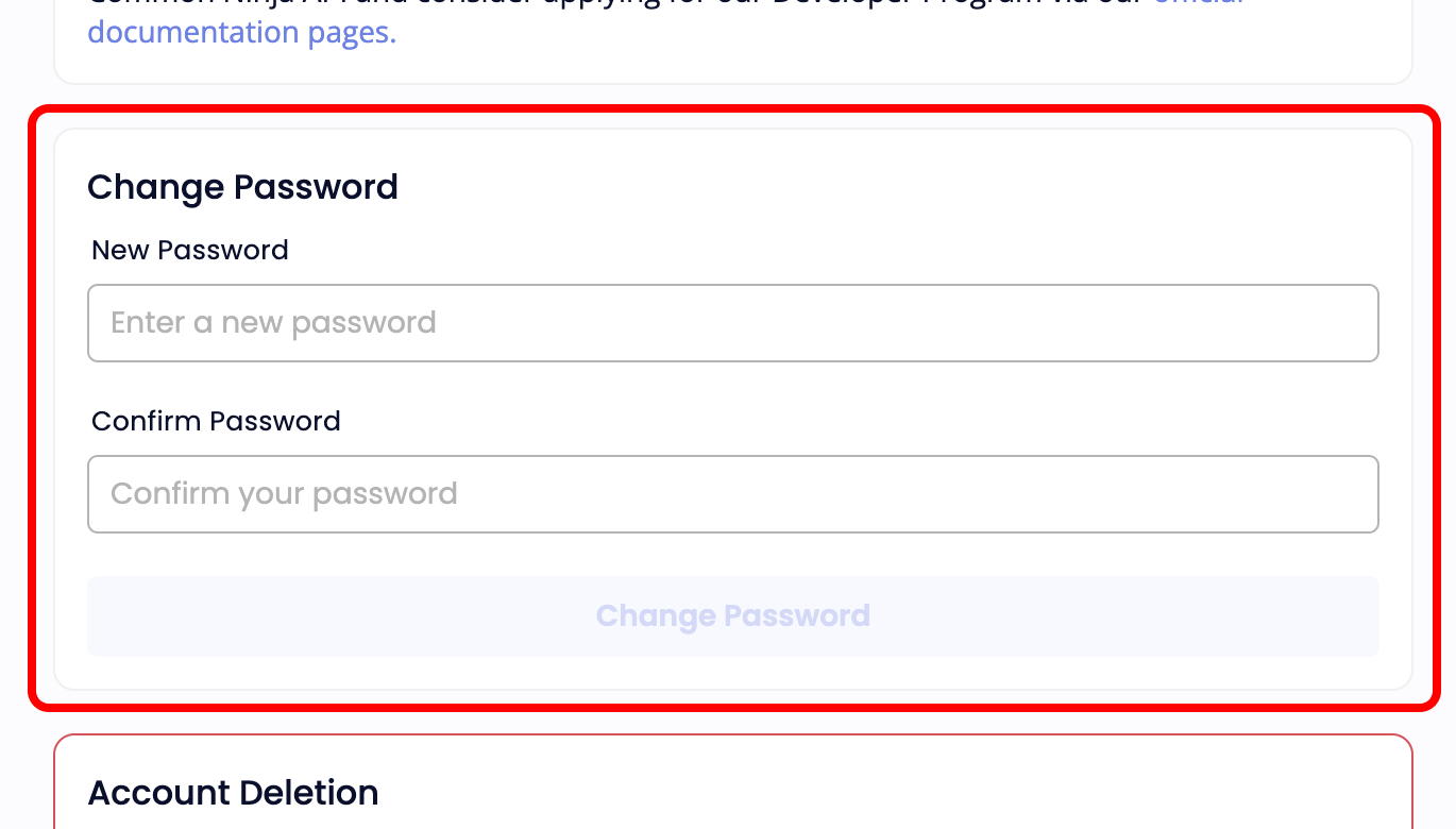 - You'll be directed to your Account page. Scroll down to find the Change Password section.