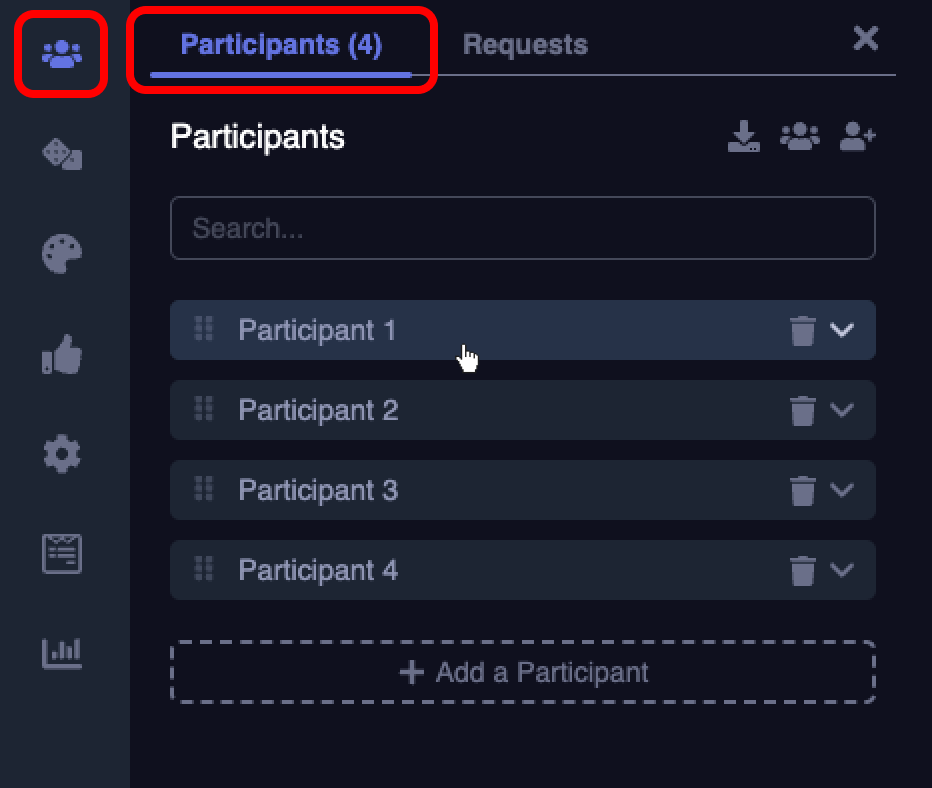 - To add or change thumbnails for your participants, navigate to the widget editor and access the Participants tab. Click on a participant to open their details.