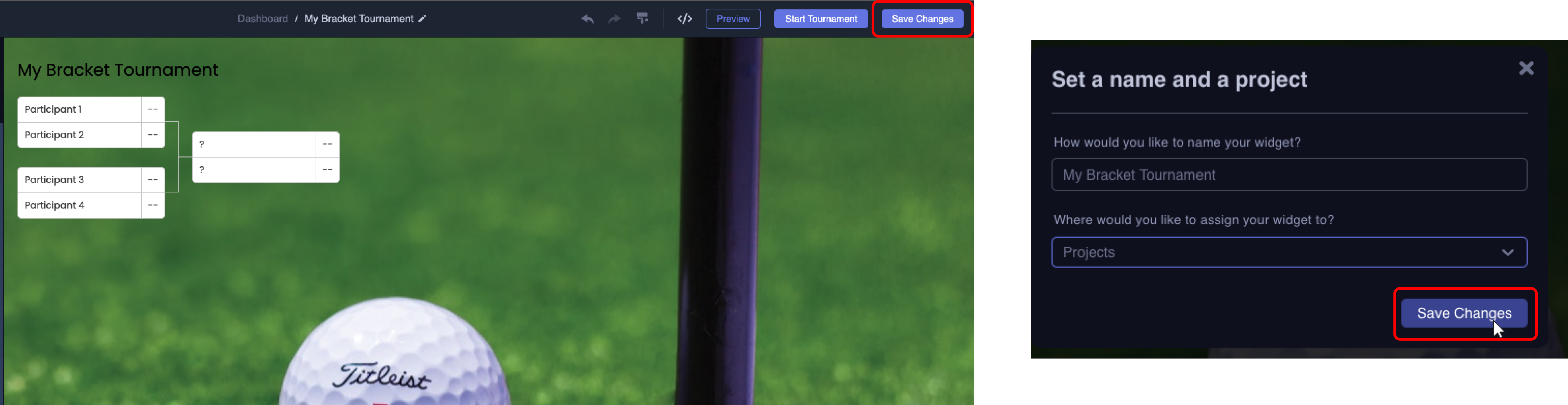 - As with any project, make sure to save your tournament as a best practice by simply clicking on Save Changes in the top right corner.