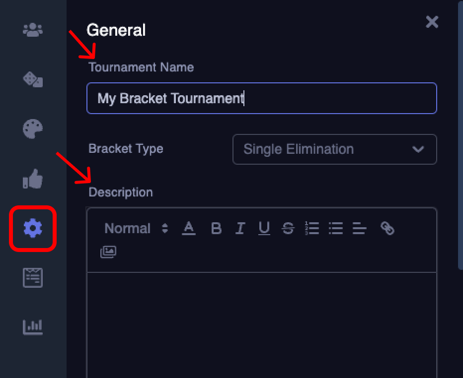 Customizing titles and descriptions for brackets/tournaments is a straightforward process.