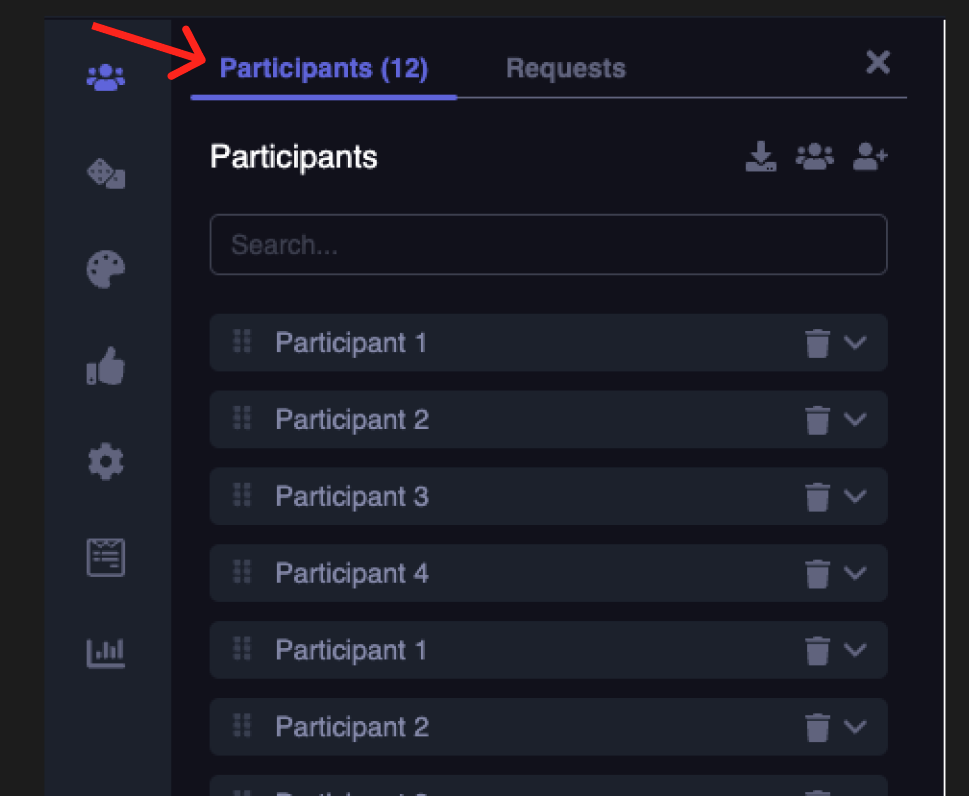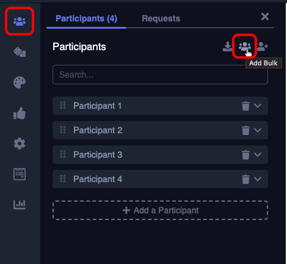 - In your widget editor, navigate to the Participants tab, and click on the Add Bulk icon.