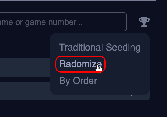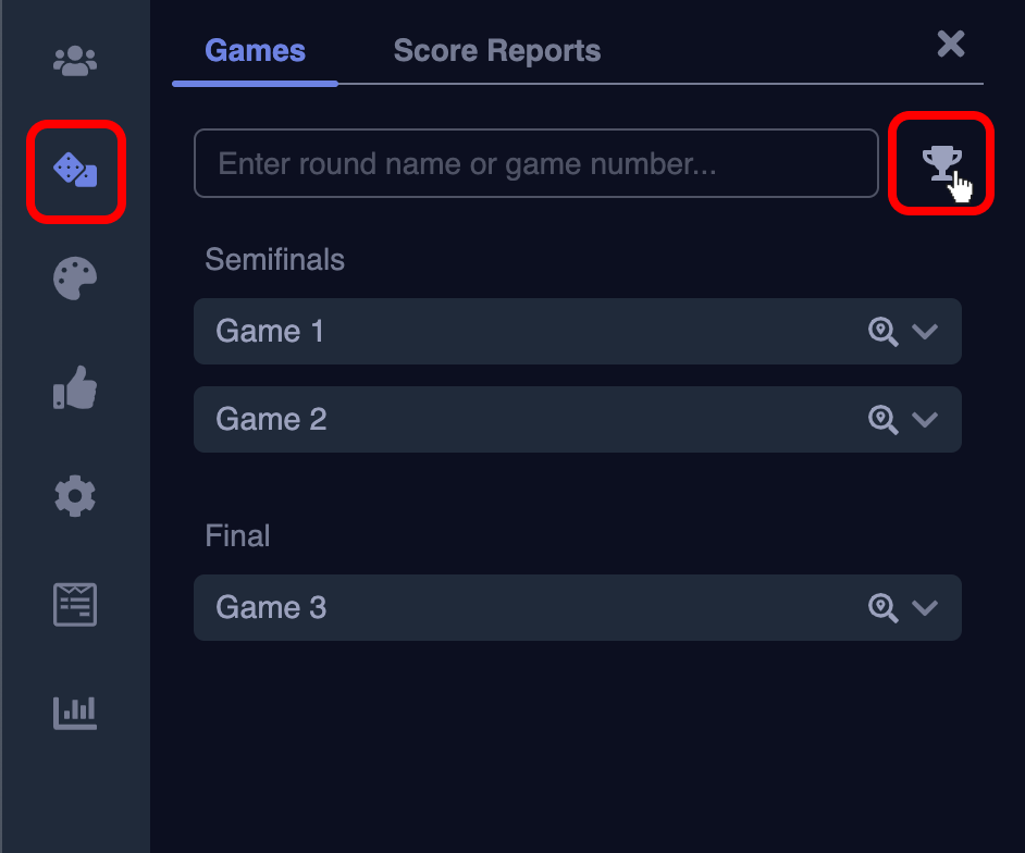 To randomize the sequence of participants, navigate to the "Games" section, and click on the trophy icon in the right panel.