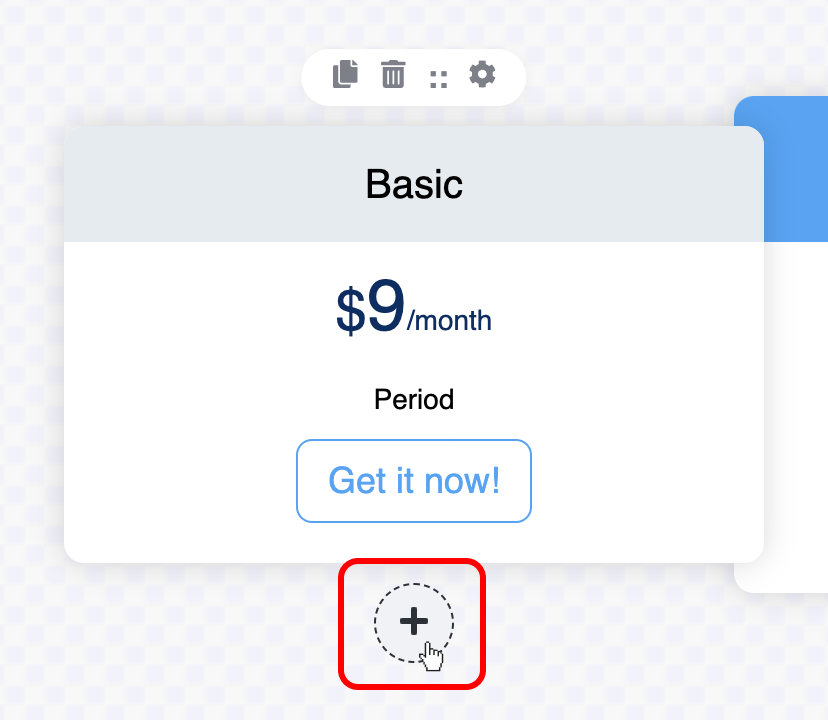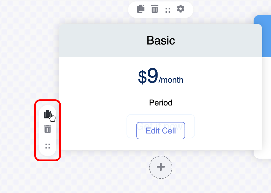 - From your widget editor, click the plus icon at the bottom of the pricing plan to add a new cell.
