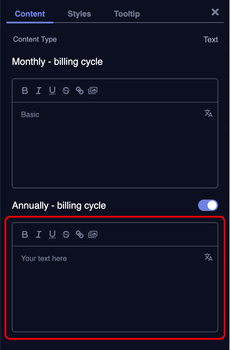 Now, when cycles are added, you can set different prices and content for each cycle.