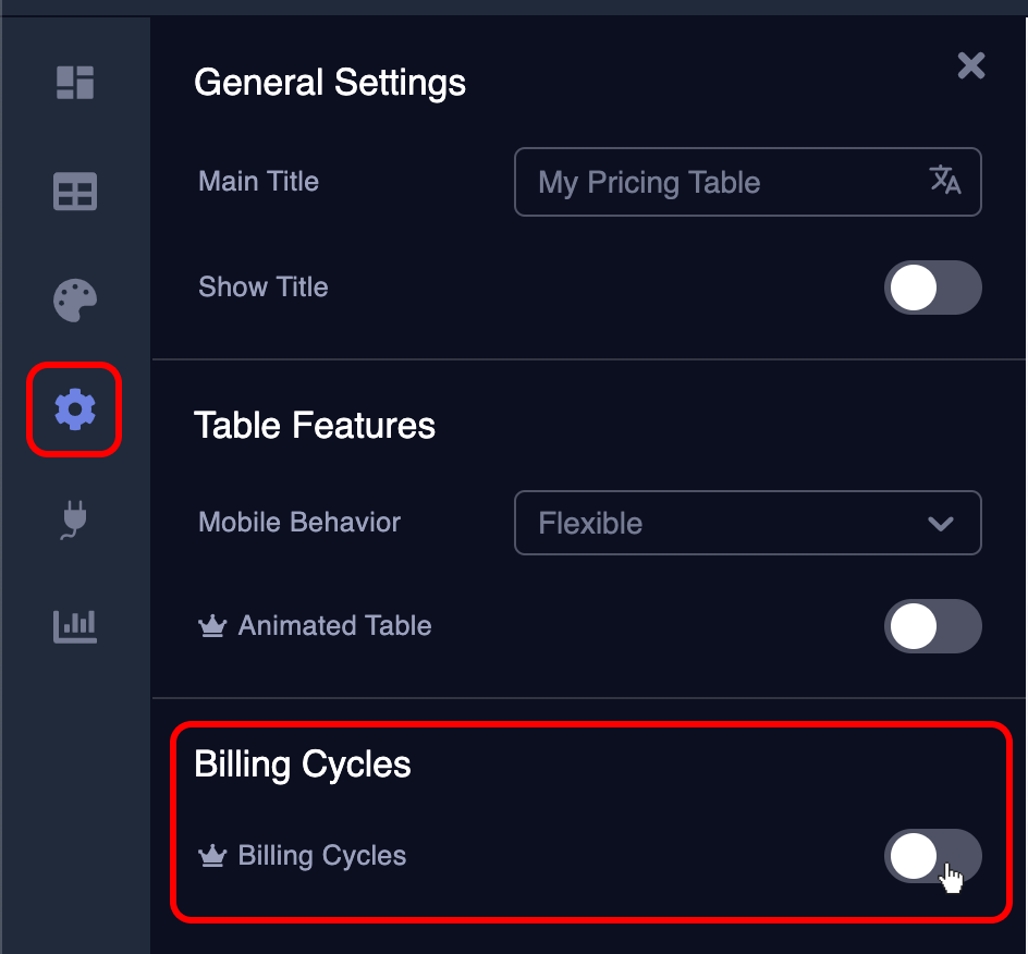 In order to show billing cycles, enter the Editor Settings panel and enable the Billing Cycle feature under the Billing Cycle section.