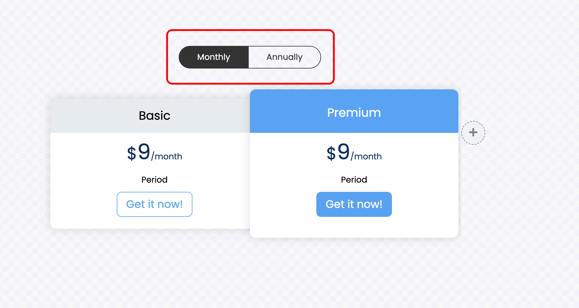 Our pricing table allows you to display different prices for each billing cycle. For example, you can have a price for a monthly subscription and a different price for a yearly subscription.
