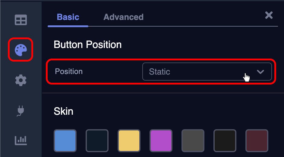 To customize your button's position within your page, navigate to your widget editor and go to the “Look & Feel” tab. Under the “Button Position” section, click on the “Position” option to select your desired position.