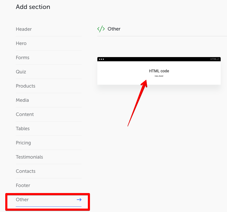 3. Next, in the dashboard, choose the “Other” category, and click on the “HTML code” widget.