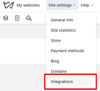 2. In the Weblium dashboard, click on “Site settings” and then, choose the “Integrations” tab.