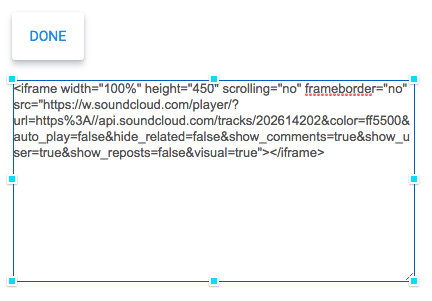 4. In the window that will come up, paste the code that you’ve copied before and click done. That’s it. You should see Common Ninja’s app instead of the empty HTML widget.