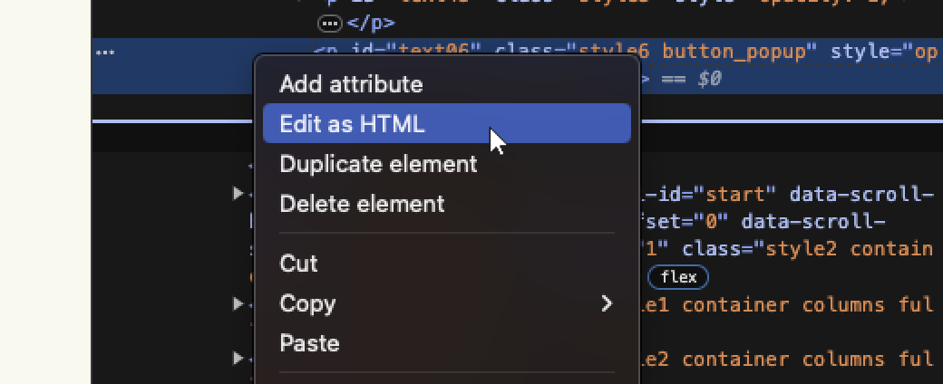 - You should now see some highlighted lines in the newly opened window. Right-click on the highlighted lines and select the "Edit as HTML" option.